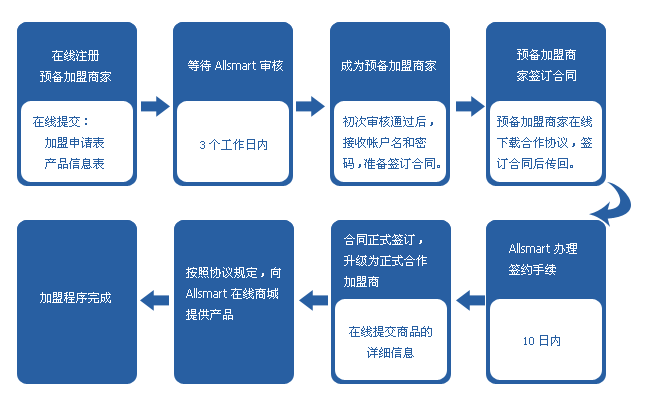 3、如果您有持续良好的产品,想利用良好的市场资源增加更多财富,那就到ALLSMART网上商城来,加入我们,一定能给您带来意想不到的收获。 |